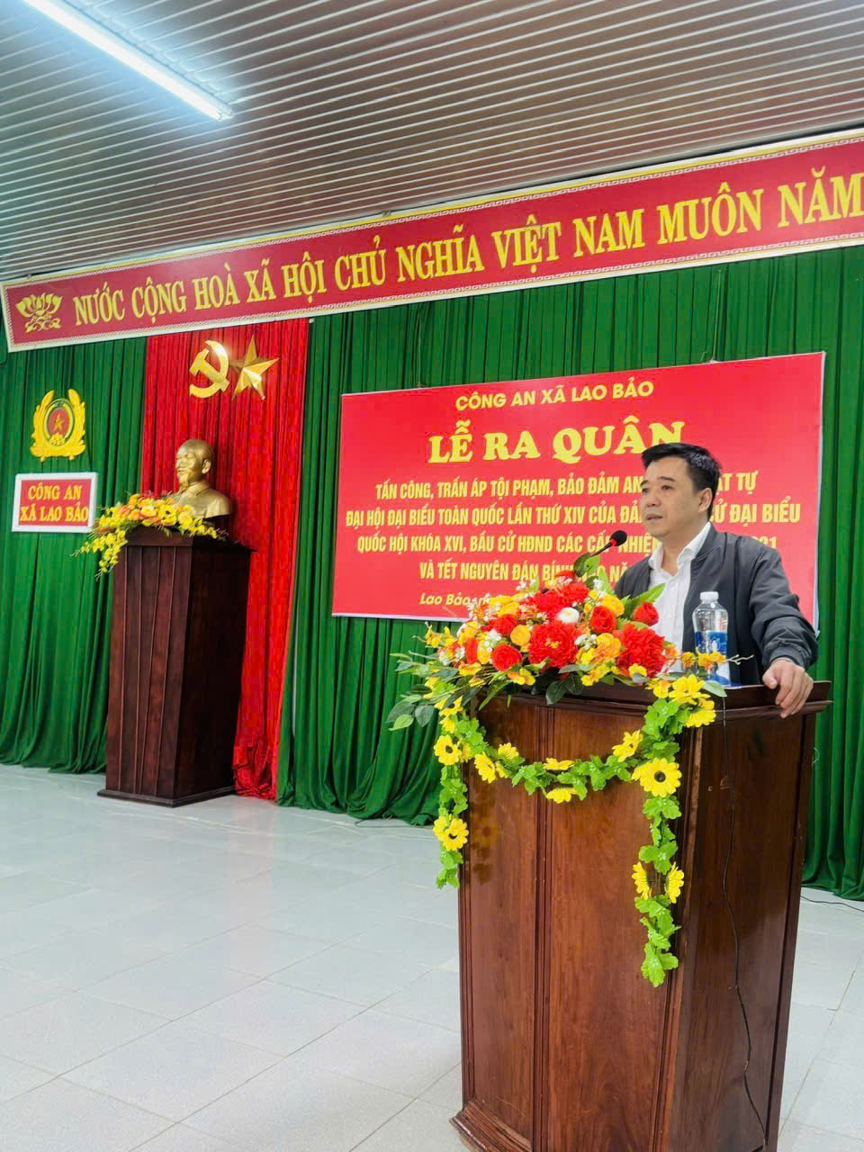 Phát biểu tại buổi lễ, đồng chí Trần Anh Vũ, Phó Bí thư Đảng ủy, Chủ tịch UBND xã ghi nhận những nỗ lực, tích cực chủ động của Công an xã khi triển khai Lễ ra quân và tin tưởng lực lượng Công an xã Lao Bảo thực hiện có hiệu quả đợt cao điểm, tập trung đấu tranh với các loại tội phạm đảm bảo an ninh, trật tự; đồng thời tăng cường công tác tuyên truyền, vận động quần chúng nhân dân tham gia phong trào Toàn dân bảo vệ an ninh Tổ quốc.