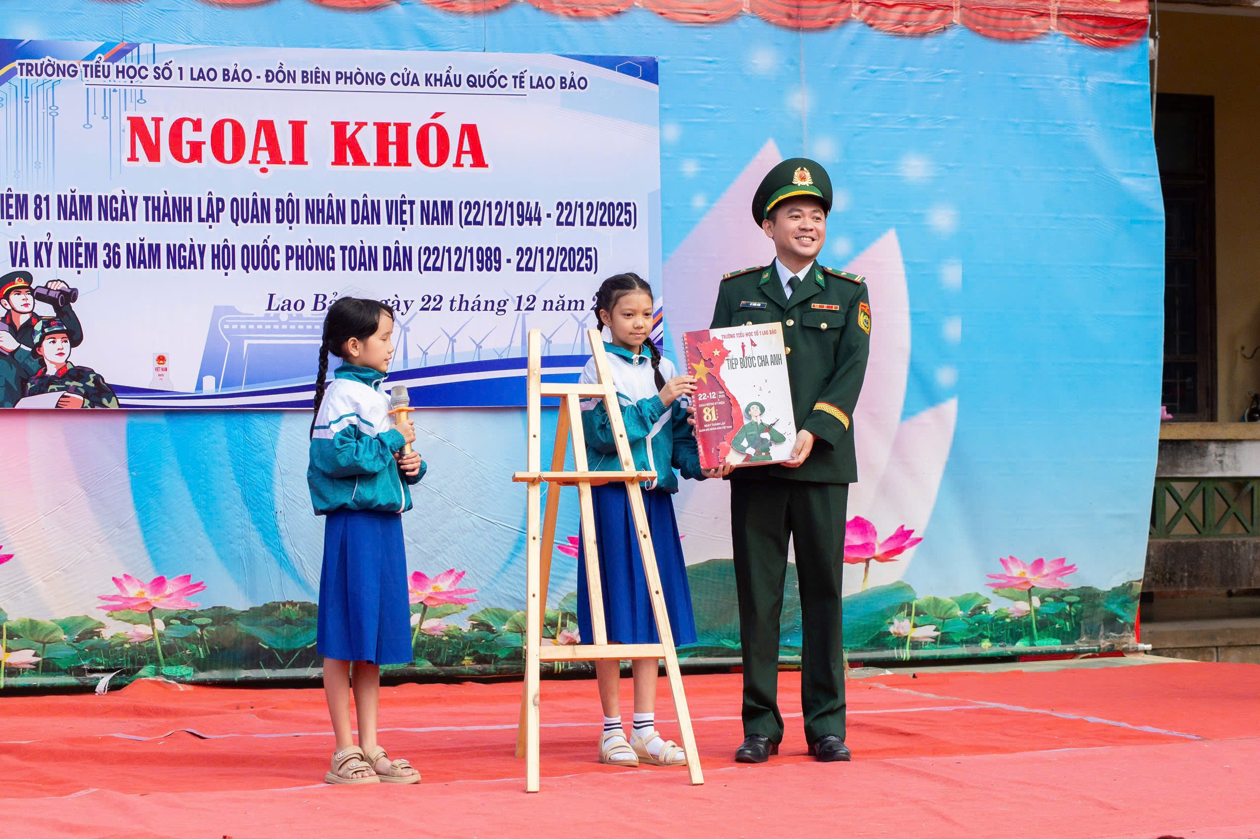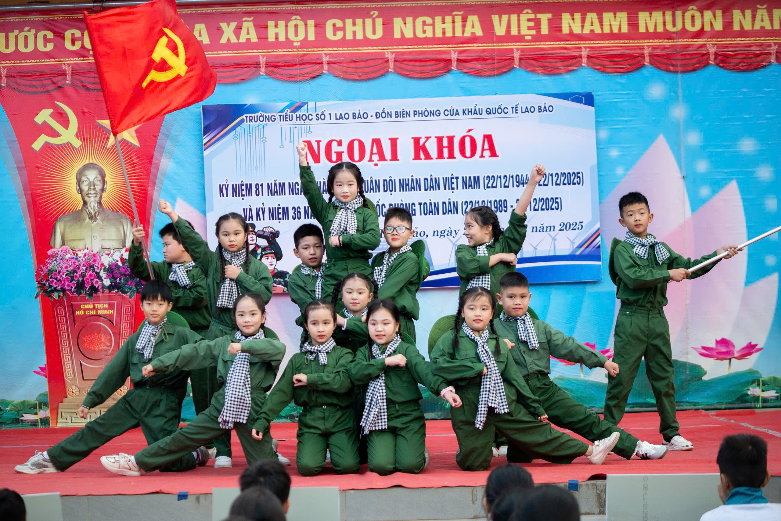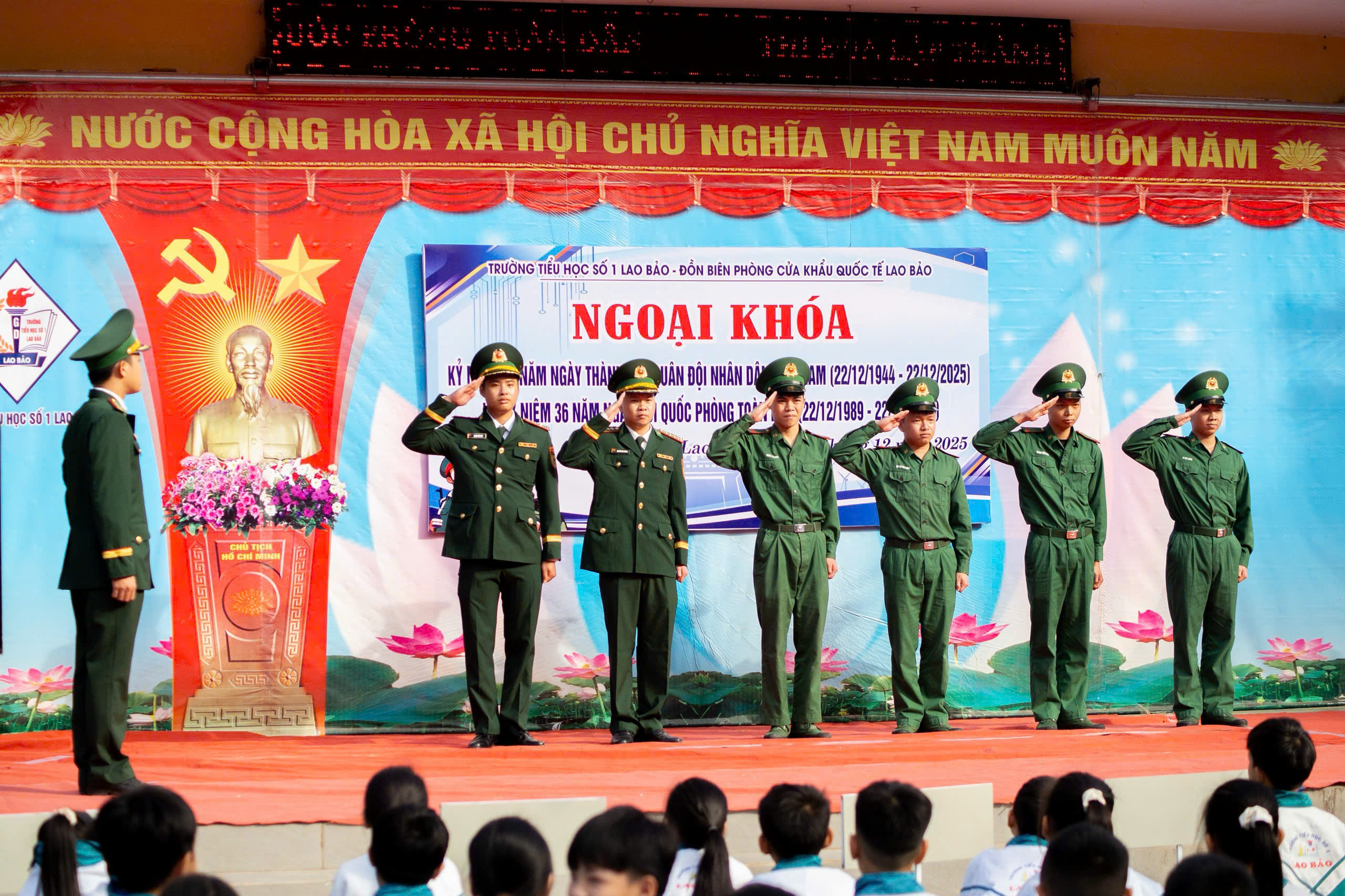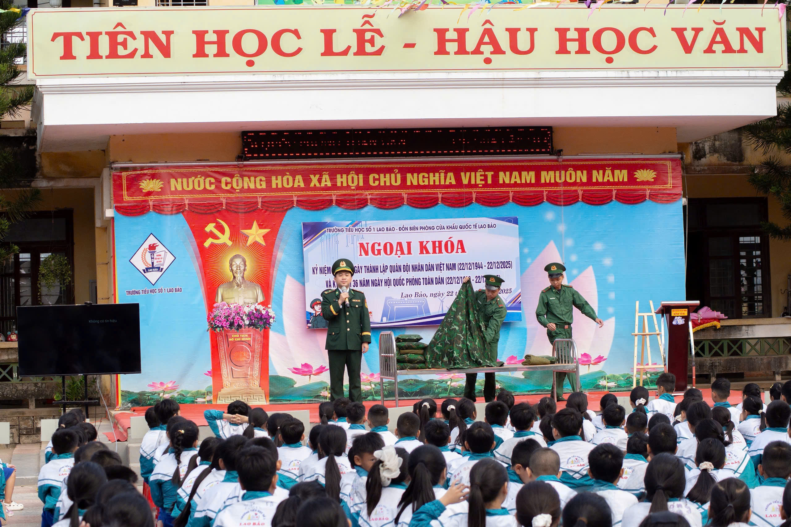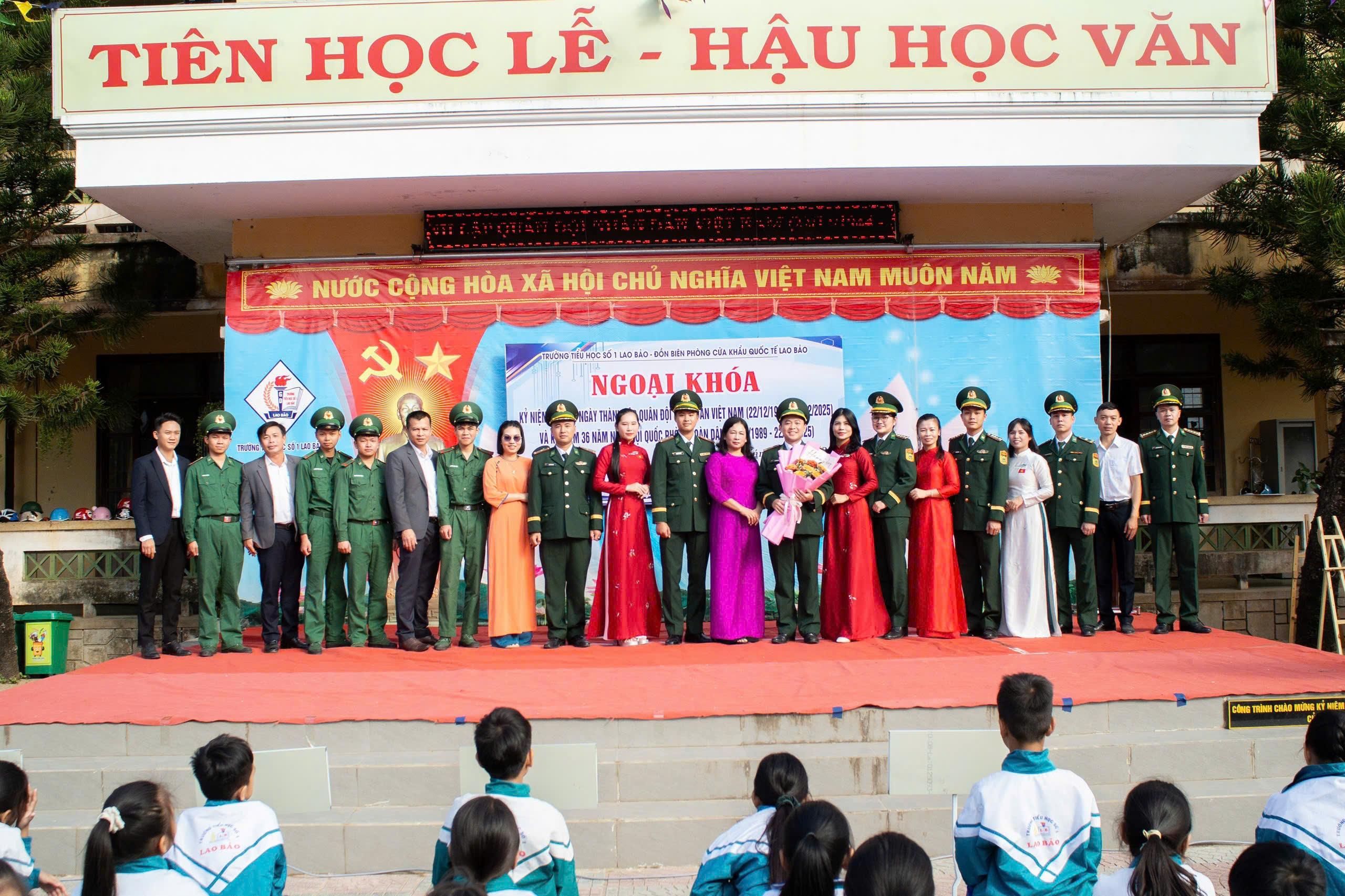 Thể hiện truyền thống đạo lý “Uống nước nhớ nguồn”, qua đó góp phần nâng cao nhận thức, khơi dậy niềm vinh dự tự hào, lòng yêu nước và khát vọng vươn lên cho đội viên, thiếu niên và nhi đồng; sáng ngày 22/12, Trường Tiểu học số 1 Lao Bảo phối hợp với Đồn biên phòng CKQT Lao Bảo tổ chức các hoạt động ngoại khóa kỷ niệm 81 năm ngày thành lập Quân đội nhân dân Việt Nam (22/12/1944 – 22/12/2025) và kỷ niệm 36 năm Ngày hội Quốc phòng toàn dân.
