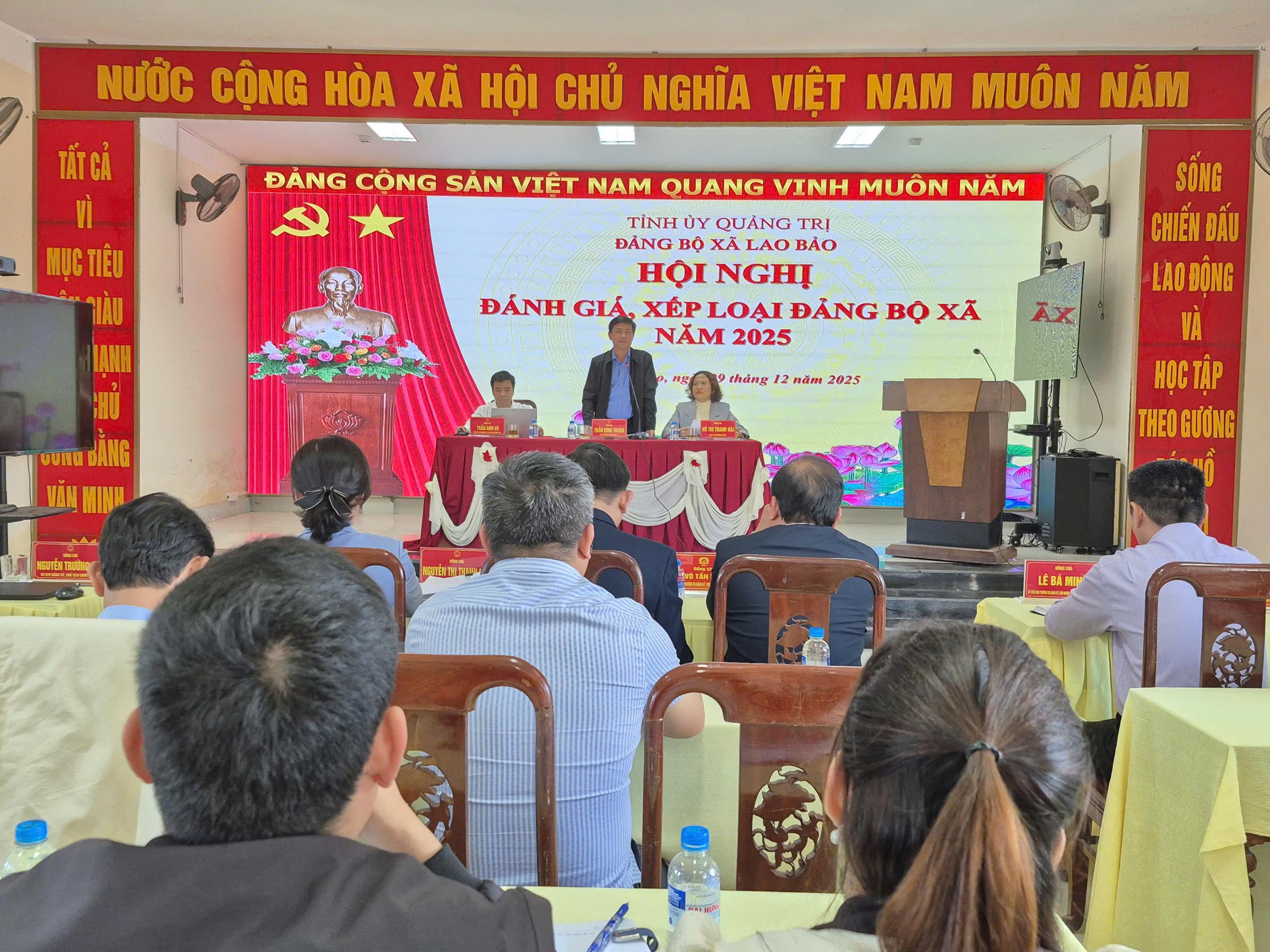 Ngày 29/12/2025, Đảng bộ xã Lao Bảo tổ chức Hội nghị đánh giá, xếp loại năm 2025. Dự và chỉ đạo hội nghị, có đồng chí Nguyễn Phương Hoạt, Phó trưởng phòng Tổ chức Đảng và Đảng viên Ban Tổ chức Tỉnh ủy. Đồng chủ trì hội nghị, có đồng chí Trần Bình Thuận, Bí thư Đảng ủy, Chủ tịch HĐND xã; đồng chí Hồ Thị...