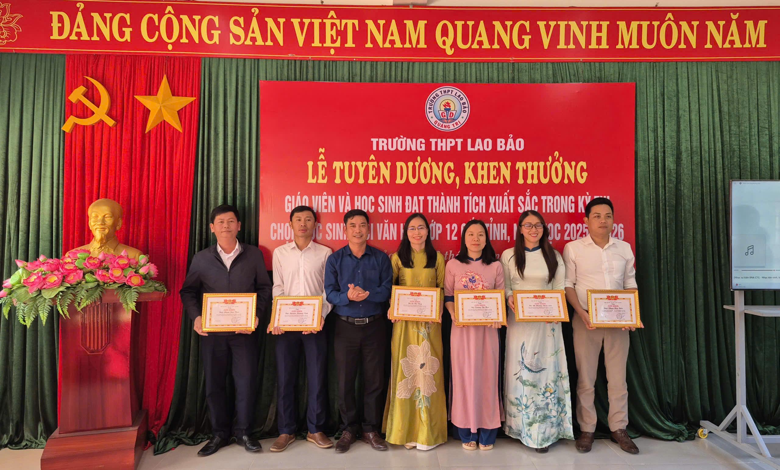 Ngày 02/01/2026, Trường THPT Lao Bảo tổ chức Lễ tuyên dương, khen thưởng giáo viên và học sinh đạt thành tích xuất sắc trong kỳ thi chọn học sinh giỏi văn hóa lớp 12 cấp tỉnh năm học 2025 - 2026.