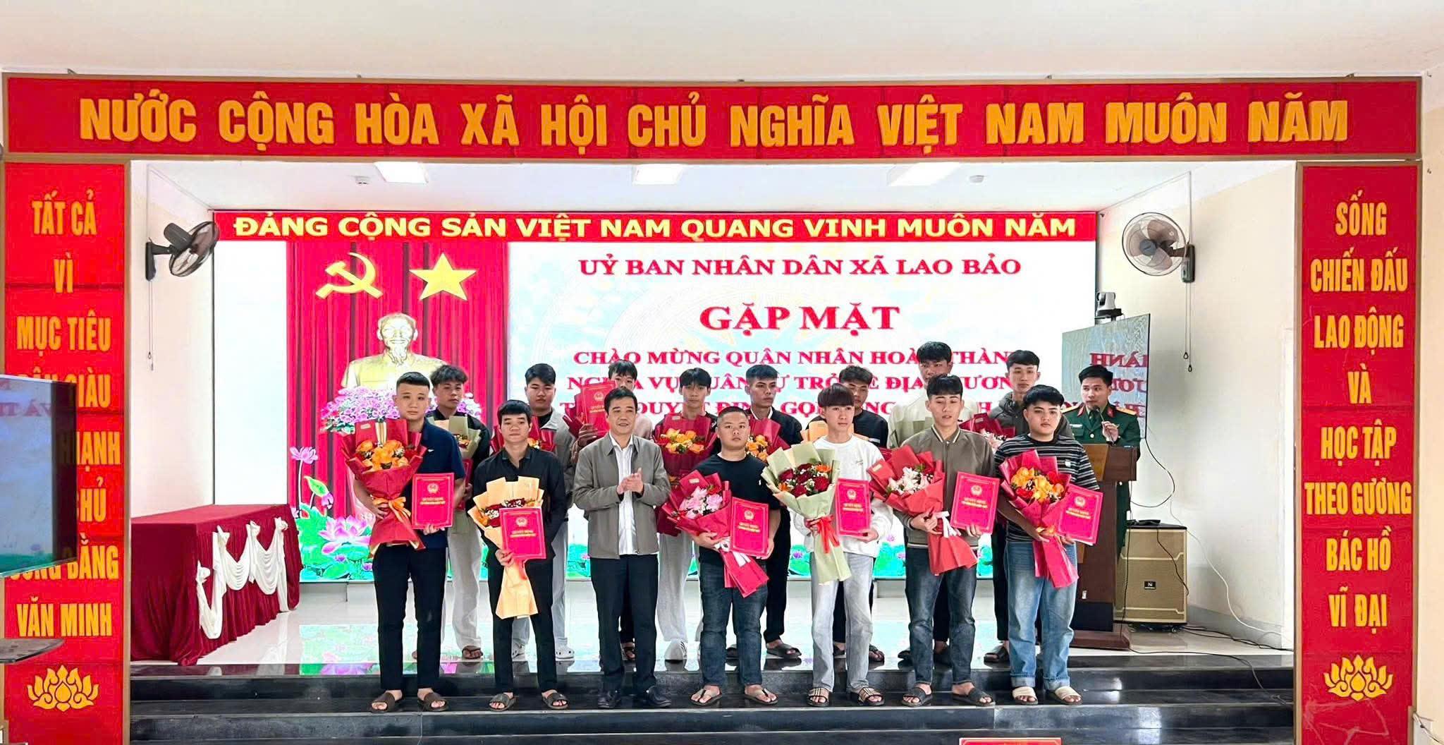 Ngày 09/02, xã Lao Bảo đã tổ chức gặp mặt, động viên quân nhân hoàn thành nghĩa vụ quân sự xuất ngũ trở về địa phương, đồng thời trao quyết định gọi công dân nhập ngũ năm 2026. Dự buổi gặp mặt, có đồng chí Hồ Thị Thanh Hải, Phó Bí thư Thường trực Đảng ủy xã; đồng chí Trần Anh Vũ, Phó Bí thư Đảng ủy,...