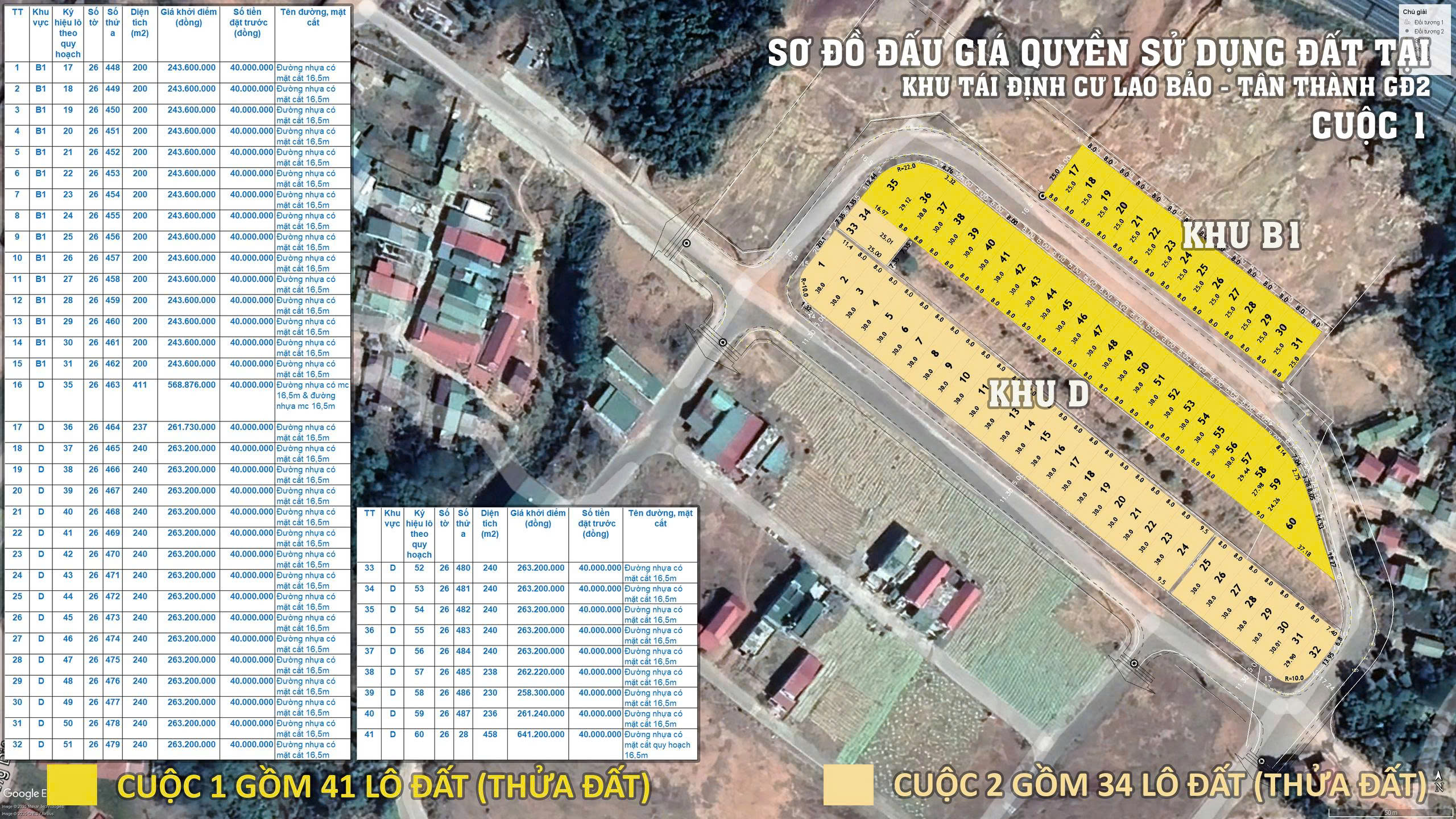 Quyền sử dụng đất của 41 thửa đất ở tại Khu Tái định cư Lao Bảo - Tân Thành; địa chỉ xã Lao Bảo, tỉnh Quảng Trị.