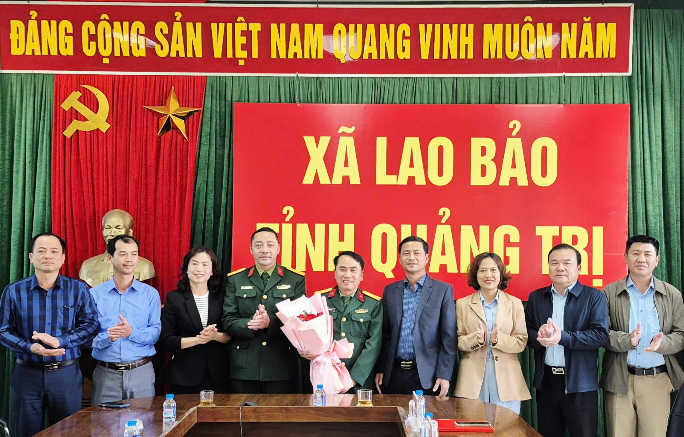 Cũng tại buổi gặp mặt, xã Lao Bảo đã tặng hoa chúc mừng đồng chí tân Chỉ huy trưởng Ban CHQS xã Lao Bảo.