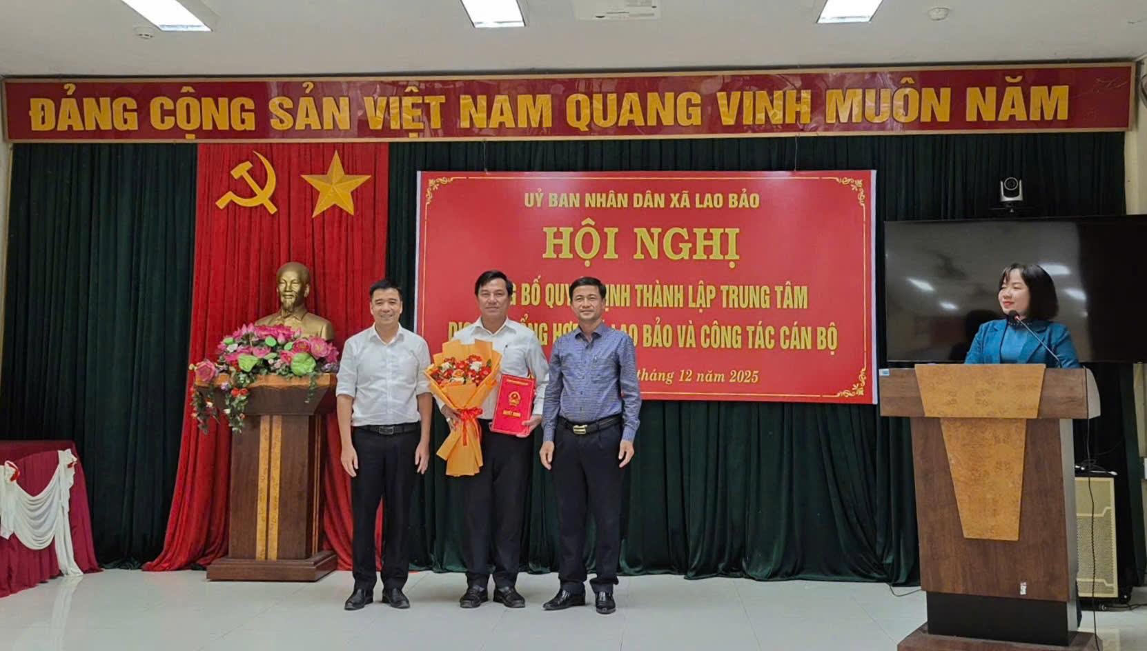 Ngày 03/12, UBND xã Lao Bảo tổ chức Hội nghị công bố quyết định thành lập Trung tâm Dịch vụ tổng hợp và công tác cán bộ. Dự Hội nghị, có đồng chí Trần Bình Thuận, Bí thư Đảng ủy, Chủ tịch HĐND xã; đồng chí Trần Anh Vũ, Phó Bí thư Đảng ủy, Chủ tịch UBND xã cùng các đồng chí trong BTV Đảng ủy xã; Đại diện lãnh đạo các phòng, ban chuyên môn của UBND xã.